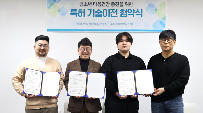 [시민일보 = 문민호 기자] 사단법인 한국청소년재단(이사장 김병후)은 26일 최경준 청소년과 청소년마음건강증진을 위한 특허이전 계약을 체결했다.