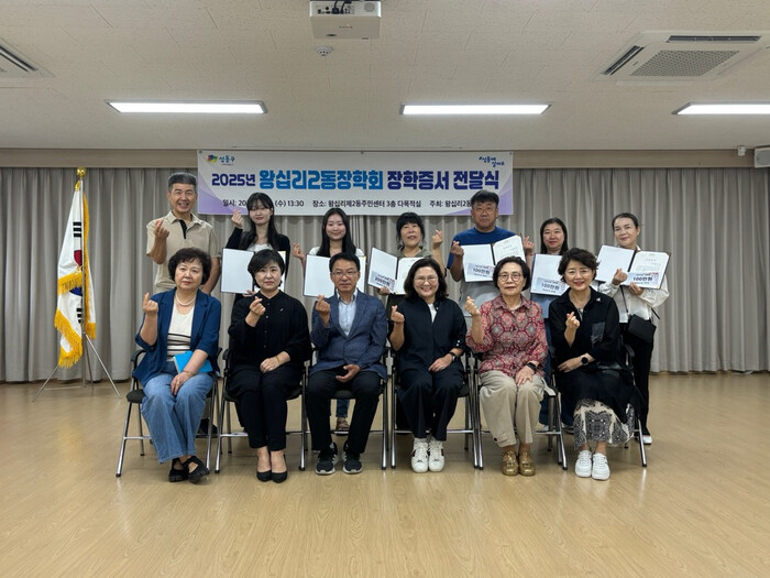 [시민일보 = 박소진 기자] 성동구(구청장 정원오) 왕십리제2동 장학회에서는 지난 10일 2025년 장학증서 전달식을 개최해 지역내 학생 7명에게 총 1100만원의 장학금을 전달했다고 밝혔다.