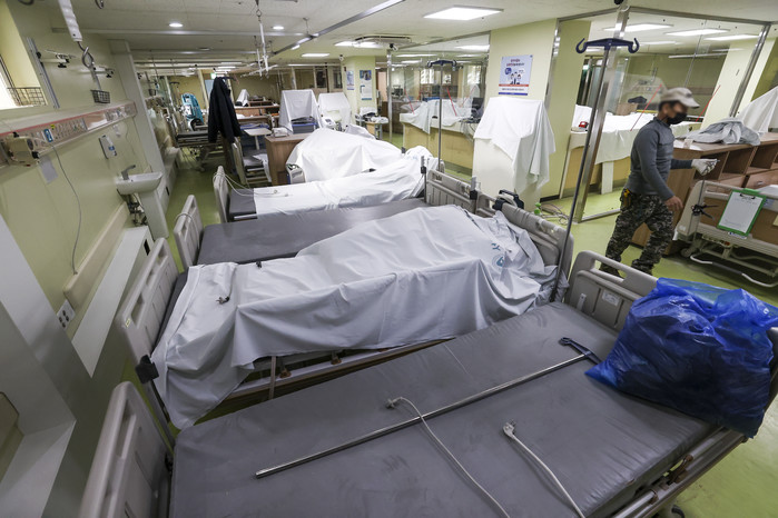 22일 오전 코로나19 거점전담병원으로 지정된 서울 광진구 혜민병원에서 공사 관계자들이 중환자실을 음압병동으로 바꾸는 작업을 하고 있다. (사진제공 = 연합뉴스)