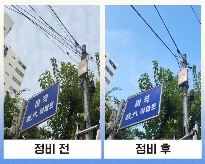 | ▲ 공중케이블 정비사업 전후 모습. (사진=강서구청 제공) |