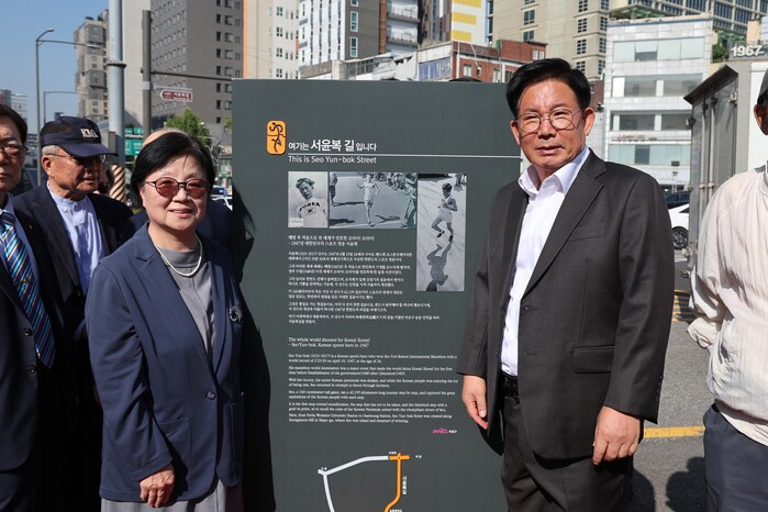 이날 구는 이대녹지 쉼터를 서윤복 쉼터로 명칭을 변경해 수많은 방문객이 보스턴 마라톤의 영광을 함께할 수 있도록 했다.