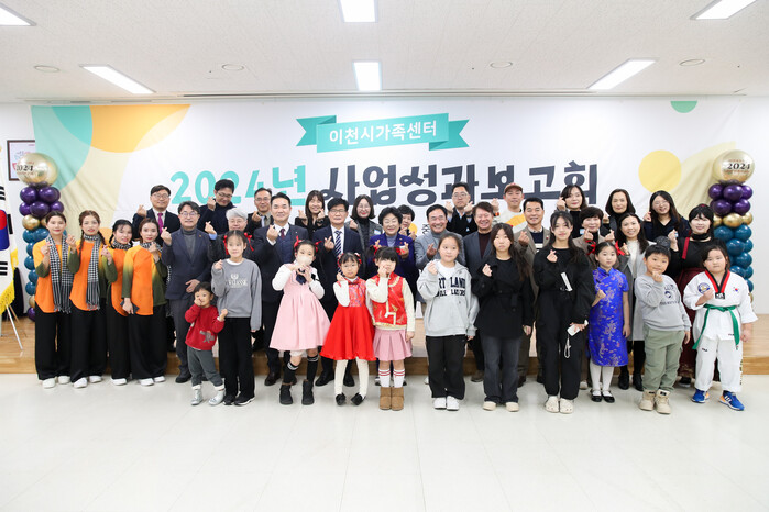 경기 이천시가족센터가 최근 김경희 시장을 비롯한 관계기관 실무자와 이천시 가족 200여명이 참석한 가운데 ‘2024년도 이천시가족센터 사업성과보고회’를 개최했다. 사진은 김 시장이 보고회 관계자들과 기념 촬영하는 모습. (사진=이천시청 제공)