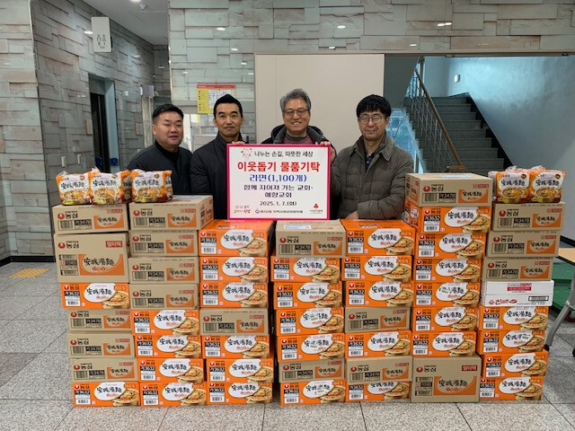 경기 하남시 예향교회 및 함께 지어져가는 교회가 최근 라면 1100개를 미사2동 행정복지센터에 전달했다. 사진은 전달식에서 관계자들이 기념 촬영을 하는 모습. (사진=하남시청 제공)