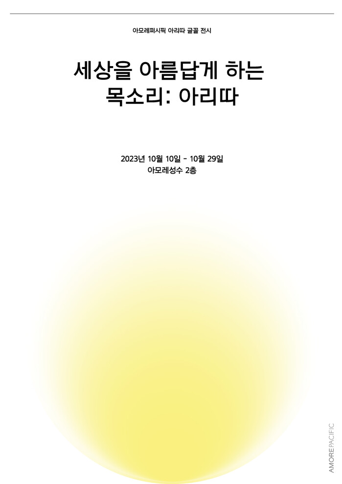 ‘세상을 아름답게 하는 목소리, 아리따’를 주제로 선보이는 이번 전시는 10일부터 이달 29일까지 서울 성수동에 위치한 ‘아모레 성수’에서 진행된다.