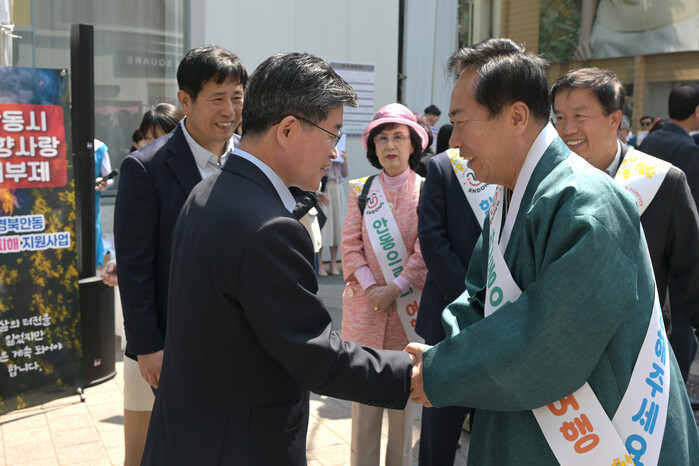 이날 행사에는 권기창 안동시장과 안동시장상인연합회, 관광협의회, 재경향우회 등 안동 시민 50여 명이 함께했으며, 김길성 중구청장은 직접 현장을 찾아 힘을 보탰다.