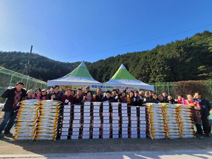 전남 순천시 서면 주민자치회가 최근 사랑의 김장나눔 행사를 열고 총 800kg의 김치를 담갔다. 사진은 김장나눔 행사 참여자들이 기념 촬영을 하고 있는 모습. (사진=순천시청 제공)