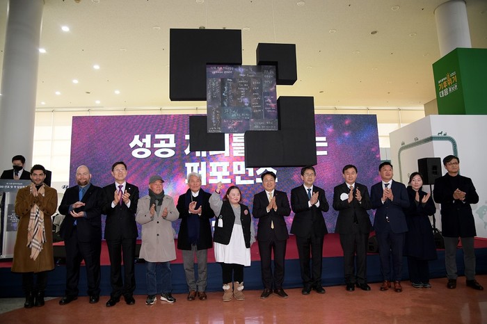이날 행사는 광주비엔날레 개막을 100일 앞두고 예술을 매개체로 민·관이 힘을 모아 장기화된 코로나19와 경제난, 고물가, 지구촌 전쟁 등 난관을 헤쳐 나가자는 취지로 마련됐다.