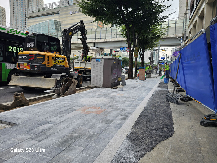 | ▲ 건대입구역 주변 보도 공사중. (사진=광진구청 제공) |