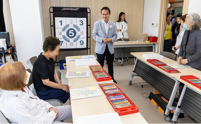 | ▲ 치매안심센터에 방문하여 치매예방 활동을 격려하고 있는 최호권 영등포구청장. (사진=영등포구청 제공) |