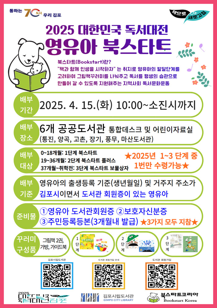 [김포=문찬식 기자] 2025 대한민국 독서대전 개최지로 선정된 경기 김포시가 영유아를 대상으로 한 ‘북스타트(Book Start)’ 사업을 본격 운영한다.