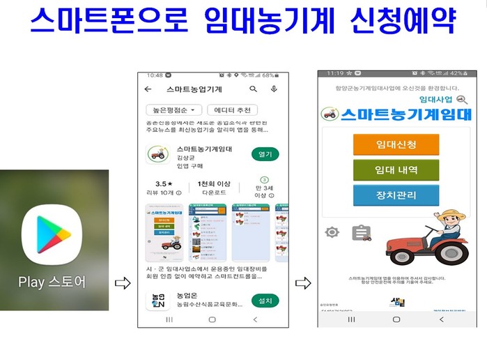 그동안은 대여를 원하는 농민이 직접 홈페이지, 방문, 전화통화를 통해 농기계를 임대할 수 있었으나, 올해부터는 스마트폰 애플리케이션을 이용하여 손쉽게 예약 및 취소가 가능하도록 하는 시스템을 구축하여 농가 편의를 도모할 예정이다.