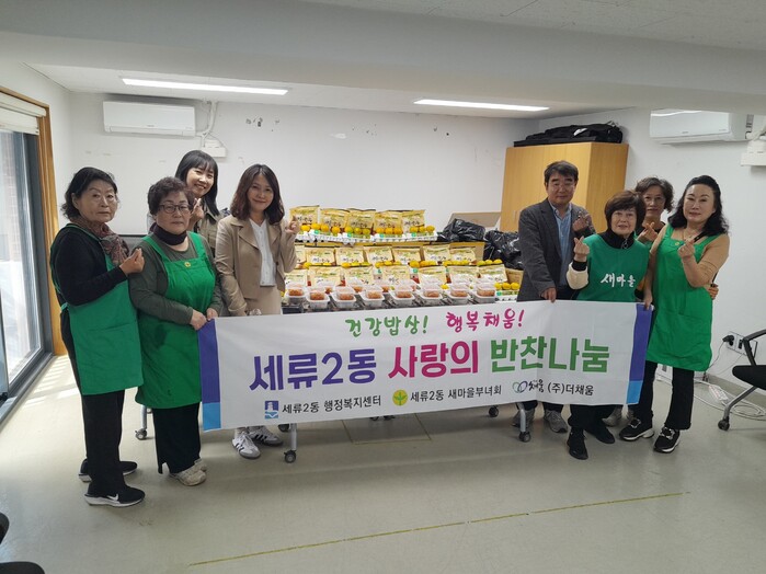 경기 수원시 권선구 세류2동 새마을부녀회가 최근 지역내 취약 계층 노인들을 위한 ‘건강밥상! 행복채움! 반찬 나눔 사업’을 진행했다. 사진은 관계자들이 기념촬영을 하는 모습. (사진=권선구청 제공)