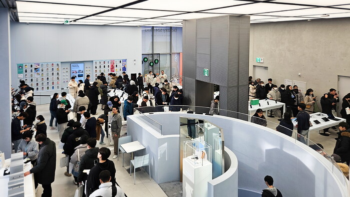 삼성전자에 따르면 이날 '삼성 강남'을 비롯한 전국의 삼성스토어, 이동통신사 매장 등은 '갤럭시 S24 시리즈'를 개통하려는 예약자들로 하루 종일 붐볐다.