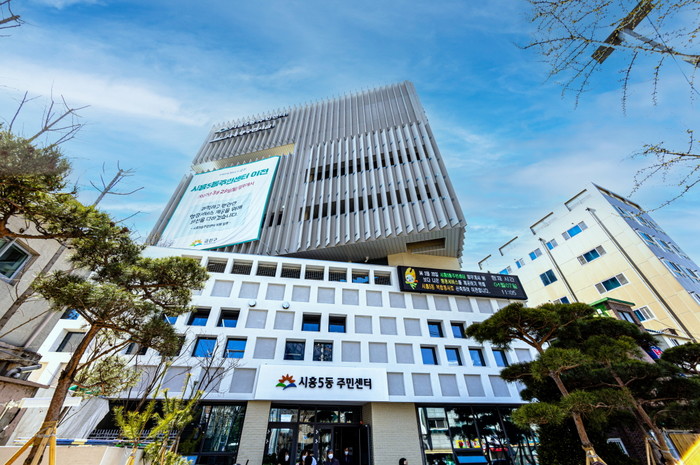 새로 건립된 ‘시흥5동 복합청사’는 문화, 행정, 복지시설을 한 곳에서 누릴 수 있는 신개념 복합청사다. 금하로24길 6에 자리하고 있으며, 지하 2층~지상 6층, 대지 763.7㎡, 연면적 3057.9㎡ 규모로 건립됐다.