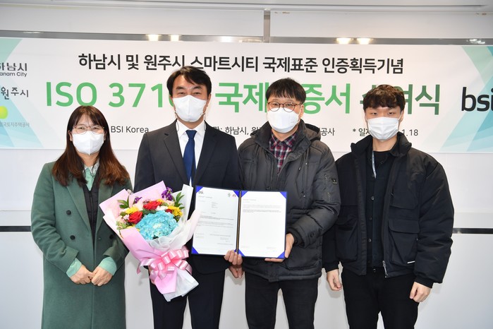 [하남=전용원 기자] 경기 하남시는 영국표준협회(BSI)로부터 스마트시티 국제표준(ISO 37106) 인증도시로 선정돼 인증서를 수령했다고 19일 밝혔다.