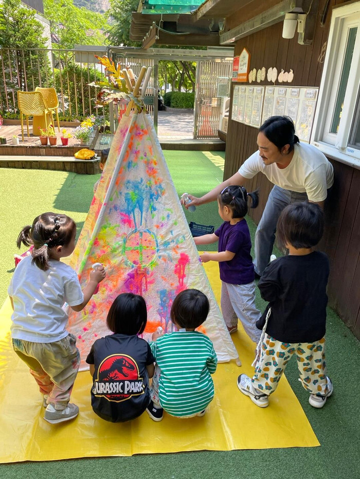 | ▲ 아빠와 함께 무지개 텐트 만들기(청운어린이집). (사진=종로구청 제공) |