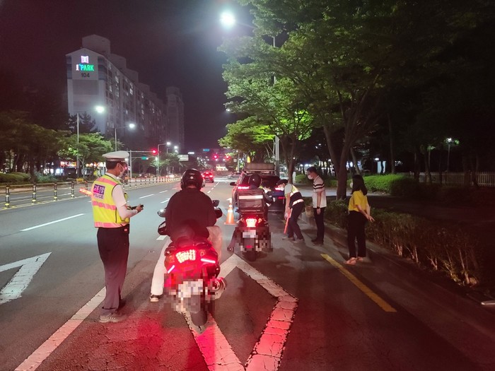 이번 단속 장소인 뜰 안채 아파트 주변은 최근 불법 개조 이륜차 들의 신호 위반, 난폭 운전, 소음 등의 상습 민원 발생 지로 사고 예방과 시민들의 불편 해소를 위해 선정되었다.