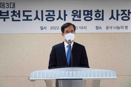 | 원명희 부천도시공사 시장이 취임사를 하고 있다. (사진=부천도시공사) |