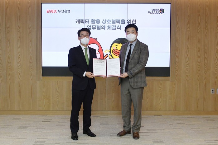 [시민일보 = 여영준 기자] BNK부산은행은 지난 25일 오후, 부산은행 본점에서 애니메이션 제작 전문기업인 ‘스튜디오더블유바바(주)’와 캐릭터 콘텐츠 활용을 위한 업무 협약식을 체결했다고 밝혔다.