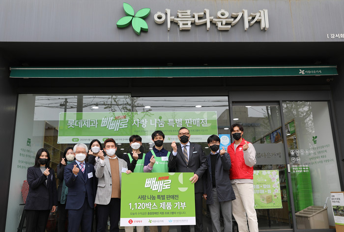 롯데제과는 ‘아름다운가게’에 꼬깔콘, 에어베이크드 등 제품 약 1120 박스를 전달했다.