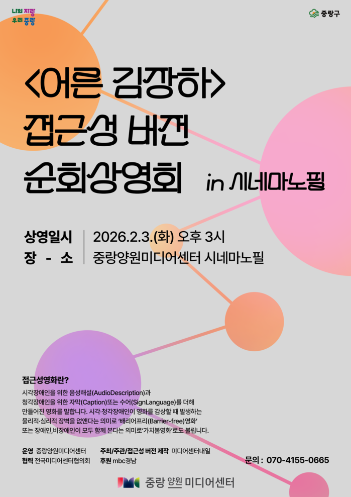 | ▲ 중랑양원미디어센터 배리어프리 상영회 포스터. (사진=중랑구청 제공) |