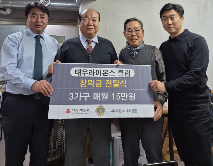 태우라이온스 클럽은 국제라이온스협회 354-C지구에 소속된 신내‧망우동 중심의 단체로, 2017년부터 지역 내 저소득 가구를 대상으로 생필품 및 장학금 후원을 지속해왔다. 특히 매월 4~5명의 저소득 가정 학생들에게 졸업할 때까지 월 15만 원의 장학금을 지원하며 나눔 문화 확산에 기여하고 있다.