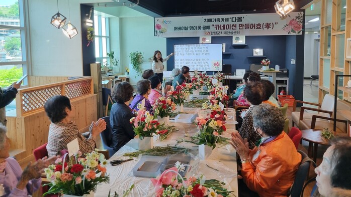 이번 행사는 합천군치매안심센터에서 5월 가정의 달을 맞아 치매 프로그램 참여자와 가족들이 서로에게 감사해 하며 가족의 의미를 되새겨 보는 시간을 가지고자 마련됐다. 치매가족카페에서는 치매 대상자와 가족이 함께 다양한 식물을 직접 다듬고 만드는 꽃 공예 체험 행사도 함께 이뤄졌다.
