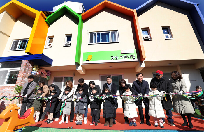 오승록 서울 노원구청장이 19일 '공릉어린이집 그린리모델링 준공식'에 참석했다. 사진은 준공식에서 오 구청장이 관계자 및 어린이집 원아들과 테이프 커팅식을 진행하는 모습. (사진=노원구청 제공)