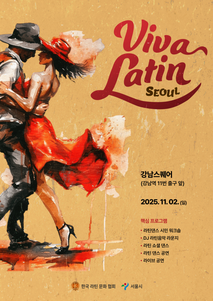 서울시가 후원하고 한국라틴문화협회가 주최하는 이번 행사는, 시민들이 직접 참여할 수 있는 라틴댄스 워크숍부터 화려한 라이브 공연, DJ쇼와 소셜댄스까지 한자리에서 즐길 수 있는 도심 속 라틴 페스티벌이다.