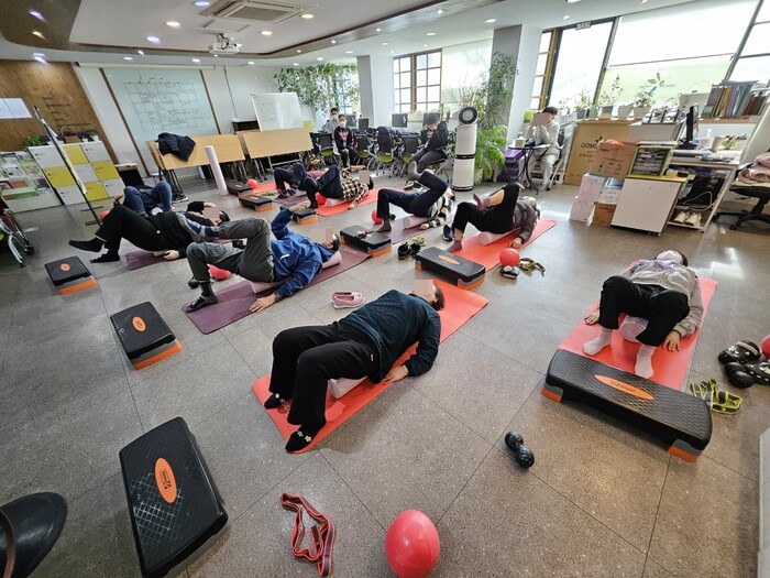 운동은 관절에 무리가 없어 매트 운동이 가능한 경우에는 그룹으로, 그외 극단적 시도로 인한 손상, 면역이 떨어지거나 근골격계 질환이 있는 대상자는 개별 운동을 할수 있도록 나눠 진행한다.