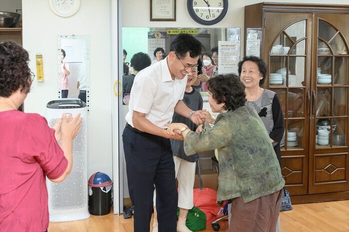 | ▲ 추석을 맞아 경로당을 방문한 이기재 양천구청장 (사진=양천구청 제공) |