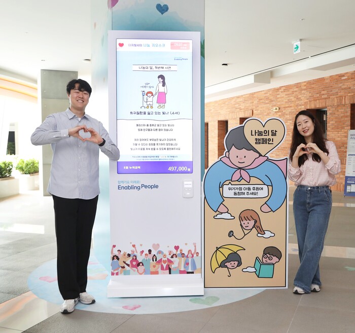 평소에는 각 사업장에 있는 나눔키오스크에 지역 사업장별로 서로 다른 한 아동의 사연이 소개되고, 목표 기부액이 모아지면 다음 아동을 위한 모금이 시작된다는 게 회사측의 설명이다.