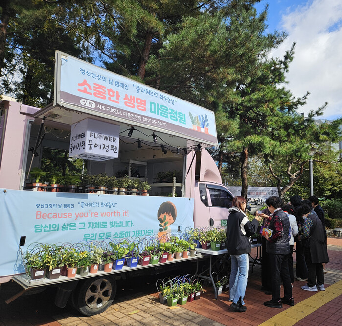 | ▲ 2024 정신건강의 날 캠페인 ‘플라워 트럭’ 사진. (사진=서초구청 제공) |