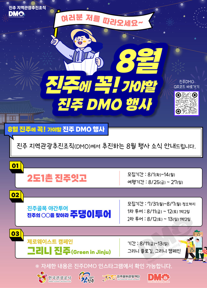 8월 행사를 비롯하여 진주DMO의 프로그램들은 진주DMO 인스타그램(jinju.dmo)에서 확인할 수 있다.