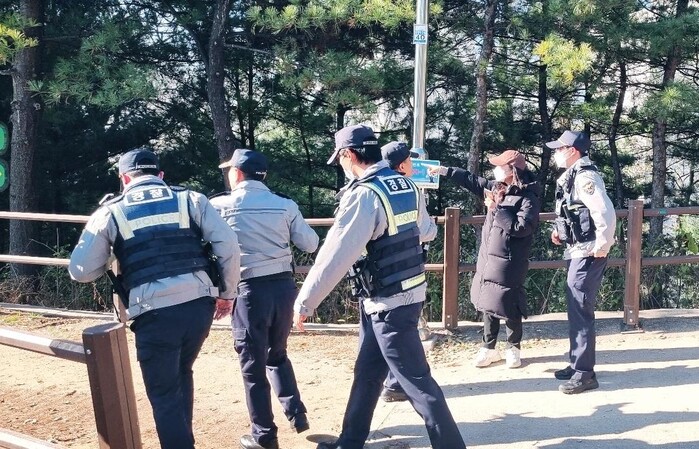 | ▲ 지난해 11월, 성동구청과 성동경찰서 간 ‘산책로 범죄예방 시스템’ 합동 모의훈련 실시 모습 (사진=성동구청 제공) |