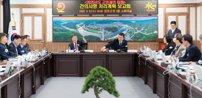 김윤철 군수는 “군민의 안전과 삶의 질 향상에 필요한 사업, 영농기 이전에 추진해야 할 농업 관련 사업 등을 우선적으로 신속히 추진하길 바란다”며 “군민들의 소중한 의견을 군정에 적극 반영해 군민이 행복한 합천을 만들기 위해 최선을 다하겠다”고 밝혔다.