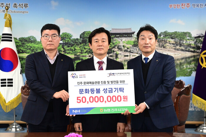 이날 기부금 전달식에는 조규일 진주시장(진주문화관광재단 이사장), 김정구 NH농협진주시지부장, 재단 관계자 등이 참석했다.