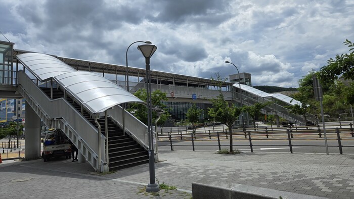 | ▲ 덮개가 설치된 남사도서관 앞 보도육교. |