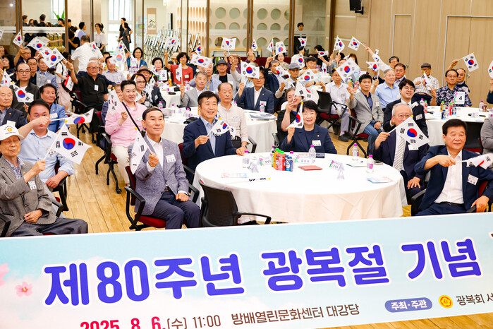 전성수 서울 서초구청장이 6일 방배열린문화센터에서 열린 ‘제80주년 광복절 기념 축하행사’에 참석해 뜻깊은 시간을 보냈다. 사진은 전 구청장이 참석자들과 단체 기념 촬영을 하는 모습. (사진=서초구청 제공)