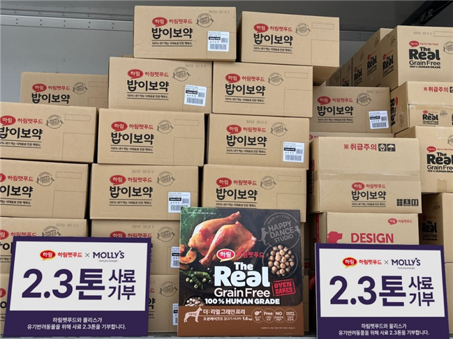 하림펫푸드는 연말연시를 맞아 유기동물을 위해 강아지 사료 2.3톤을 기부했다고 27일 밝혔다.