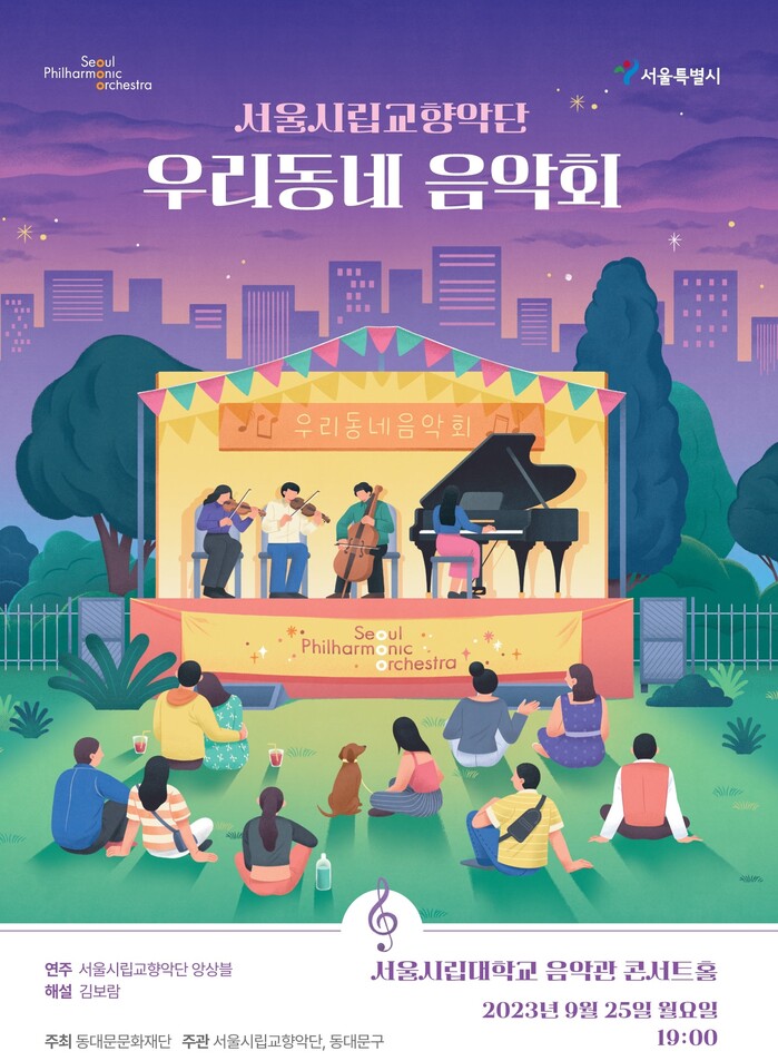 [시민일보 = 이대우 기자] 서울 (재)동대문문화재단이 오는 25일 서울시립대학교 음악관 콘서트홀에서 서울시립교향악단 ‘우리동네 음악회’를 개최한다.