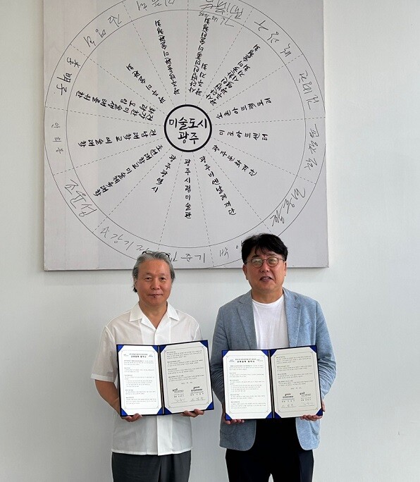 | ▲ 광주시립미술관-(재)광주정보문화산업진흥원, 24일 시립미술관에서 업무협약 체결 기념촬영 / 광주광역시 제공 |