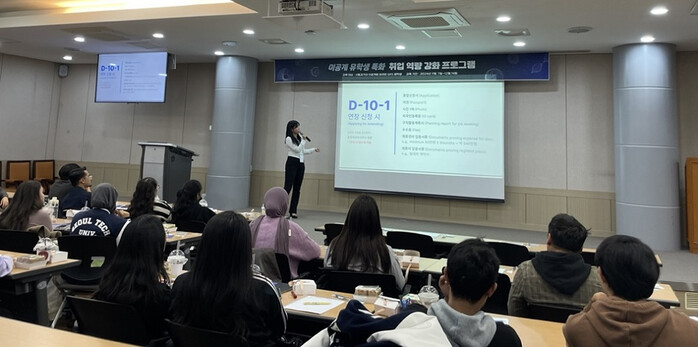프로그램 주요 내용으로는 한국 이공계 취업을 위해 필요한 이력서 및 자기소개서 작 성법, 외국인 유학생이 알아야 할 면접 전략을 집중적으로 학습하는 ‘취업 필수역량 교육’부터 한국 취업을 위해 필수적인 비자발급 과정과 절차를 안내하 고 체계적인 로드맵을 설계할 수 있도록 돕는 ‘비자 로드맵 설계’ 등으로 구성됐다.