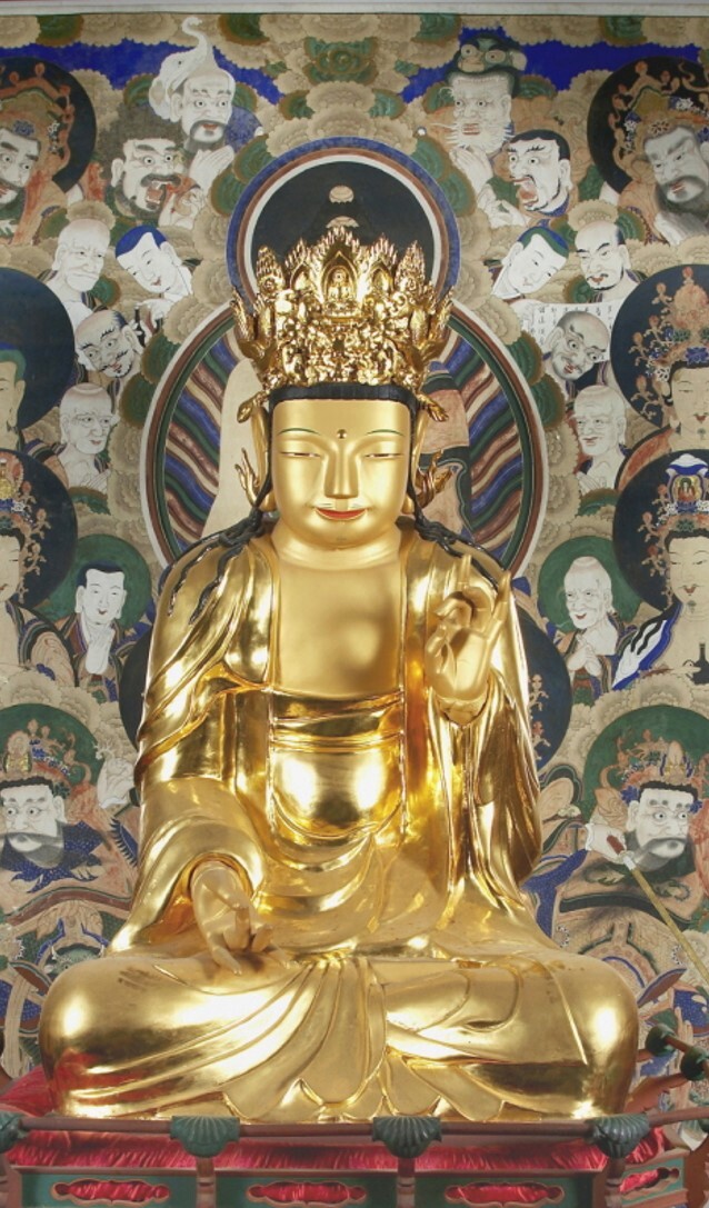 '김해 은하사 대웅전 목조관음보살좌상'은 158㎝의 큰 불상으로 곧은 자세의 당당한 신체 표현, 넓고 큰 얼굴과 입체감 있는 옷자락, 장식성이 강한 팔찌, 엄지손가락의 각진 살집 표현 등 조각승의 개성이 돋보이는 작품이다.
