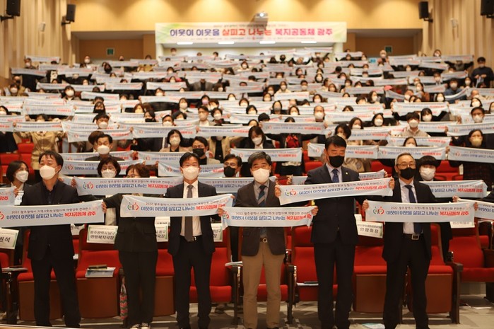이날 수완문화체육센터 공연장에서 열린 ‘이웃이 이웃을 살피고 나누는 복지공동체 광주’ 주제의 ‘2022년 지역사회보장협의체 지역컨퍼런스’에는 협의체 위원과 주민 300여 명이 참석해 성황을 이뤘다.