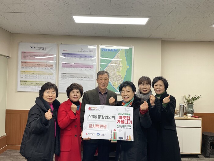서울 도봉구 창3동은 최근 통장협의회로부터 따뜻한 겨울나기 이웃돕기 성금 400만원을 전달받았다. 사진은 전달식에서 관계자들이 기념촬영을 하고 있는 모습. (사진=도봉구청 제공)