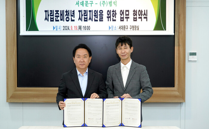 [시민일보 = 이대우 기자] 서대문구(구청장 이성헌)가 관내 자립준비청년들의 취업과 안정적인 사회정착을 위해 최근 ㈜범익(대표 황치범)과 업무협약을 체결했다.