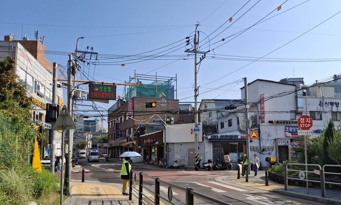 | ▲ 성동구 노인일자리에 선발된 참여자들이 스쿨존교통지도사로 활동하는 모습. (사진=성동구청 제공) |