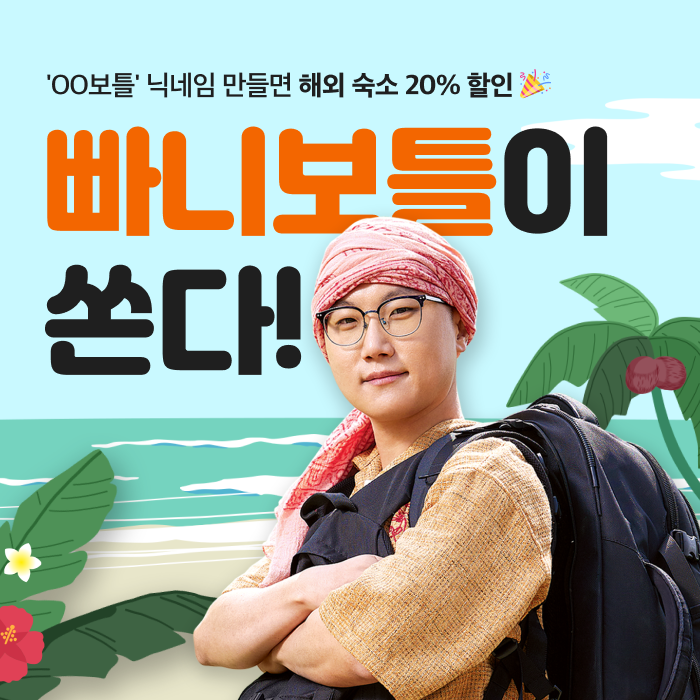 대한민국 대표 종합 여행·여가 플랫폼 여기어때(대표 정명훈)는 여행 유튜버 ‘빠니보틀’과 해외숙소 20% 할인 쿠폰을 선물한다. 여기어때가 해외 항공권, 숙소 등을 출시하며 여행 서비스를 확장한 기념 이벤트다.