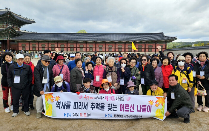 [시민일보 = 이대우 기자] 서대문구 북가좌1동(동장 김종일)은 최근 동 지역사회보장협의체(위원장 김상윤)가 관내 홀몸 어르신 30명을 위해 ‘역사를 따라서 추억을 찾는 어르신 나들이’를 진행했다고 밝혔다.